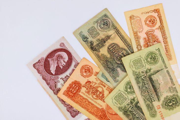 ソビエト連邦紙幣は、1922年の連邦成立から1991年の崩壊までの約70年間に発行された紙幣です。1922年に発行された紙幣は旧金貨10ルーブルと同じ価値を持つチェルボーネツです。その2年後には、1チェルボーネツの1/10と等価値を持つ新政府紙幣も発行されました。