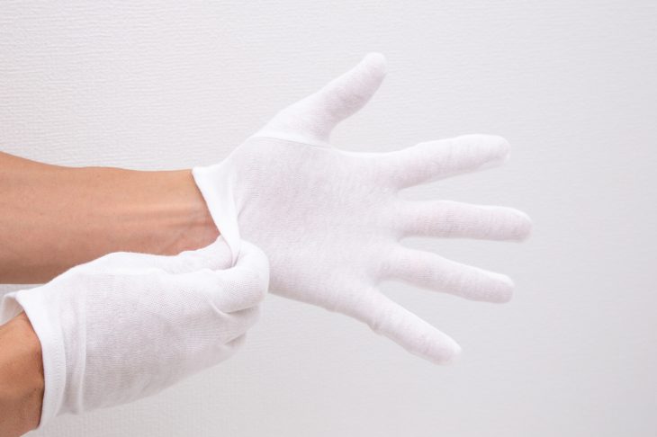 取り扱う際は、素手で直接触れずに柔らかい布や手袋を使用しましょう。陶磁器などの割れるものをお手入れしたり、移動したりする際は、落下に注意して扱うことが大切です。