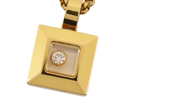 奈良県橿原市に出張し、ネックレスの査定をさせていただきました。お品物は、ショパール『ハッピーダイヤモンド』のネックレスで、イエローゴールドをたっぷり使った重量感のあるペンダントトップが映えるお品物でした。丸みのあるハート型に仕上げられたペンダントトップの中には、3つのダイヤモンドが配置されて燦然たる輝きを見せています。細かい引っかき傷などもほぼなく、パッと見た限りでは新品といっても通りそうな状態の良さでした。そのため、高価買取となりました。