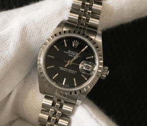 大切なコレクションを福ちゃんにお任せいただき、ありがとうございます。お客様の時計愛を垣間見れ、私としても楽しい時間となりました。さて、ロレックスのデイトジャストは、実用性の高さやエレガントなデザインが人気です。発売から長い年月が経っても、変わらずロレックスの象徴として親しまれています。無駄のないシンプルな構造が幅広い世代に受け入れられており、中古市場でも取引が活発です。今回のお品物は、キズや汚れはあるものの純正箱や保証書などもあり、信頼できる状態だったため、高額買取が実現いたしました。